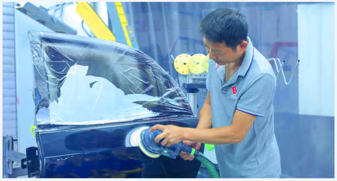 原子灰刮涂施工完成后的表面非常粗糙,刮涂后的表面也比周围的旧漆膜表面高,如果不对其进行充分的打磨,等面漆喷涂后,就会在修补处留下明显的凸起,故必须充分打磨平整,以获得良好的适合下道工序施工所需要的表面……