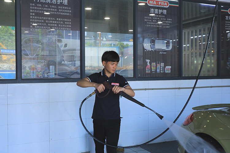 韦浩宇,18岁,贵州万通汽车美容专业的学生。2019年通过校企合作推荐到高端车曼芙丽汽车美容养护连锁企业工作。从学校走入职场,这不仅仅只是身份的转变,也是新生活的重新开始。