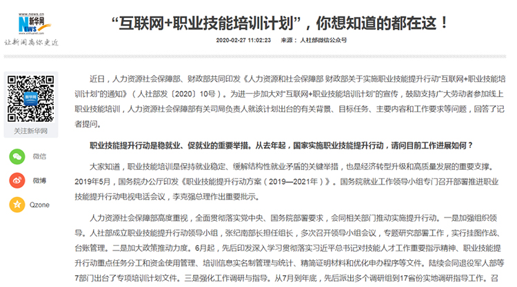 而在不久前,人社部、财政部印发了关于实施职业技能提升行动“互联网+职业技能培训计划”的通知,表示职业技能培训是保持就业稳定、缓解结构性就业矛盾的关键举措,鼓励支持广大劳动者参加线上职业技能培训。