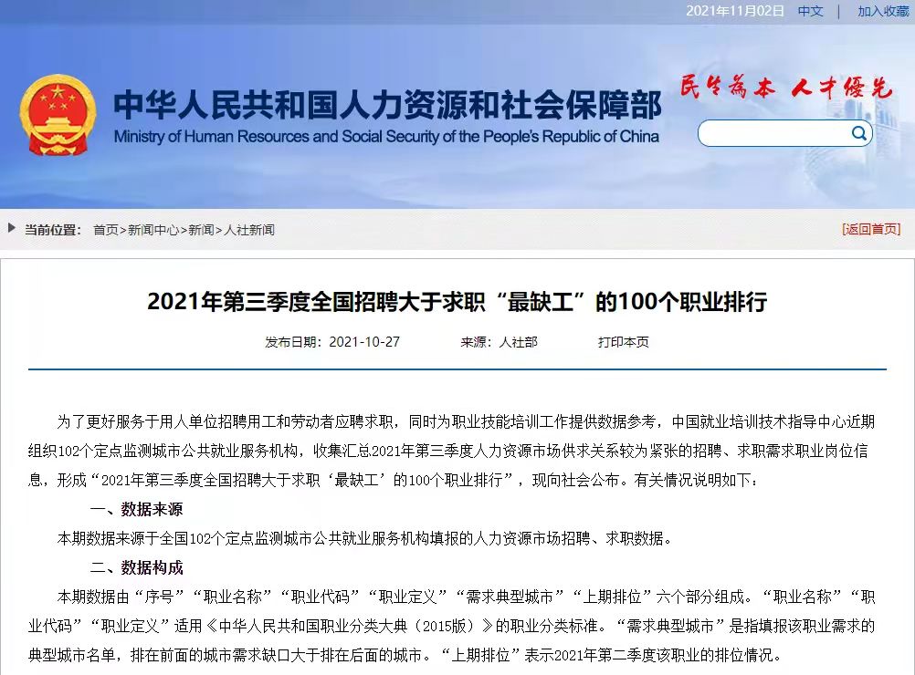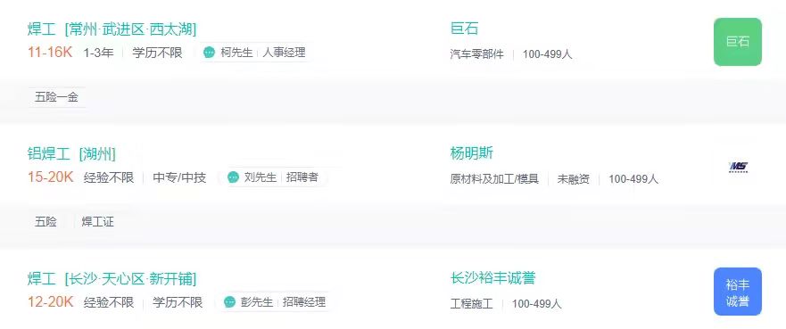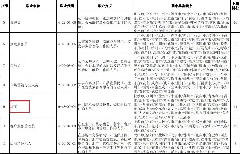 人社部公布的“2021年第三季度全国招聘大于求职“最缺工”的100个职业排行,本期”焊工”进入前十!!!