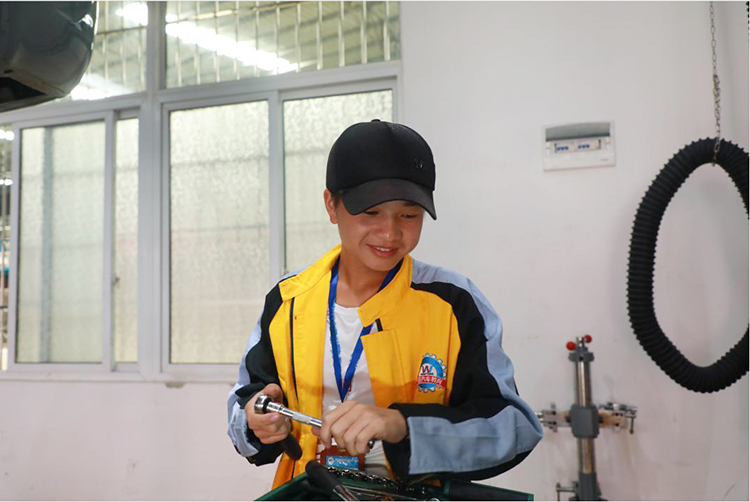 “每个零部件都自己的用途,每个年轻人都有自己的人生,喜欢拆装、喜欢拼凑,但是更喜欢一个专业的领路人”一个爱笑阳光的少年对我们说。他就是贵州万通汽车维修工程师专业的新生——杨智