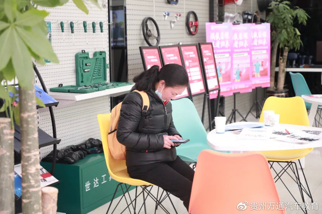 贵州万通汽车学校专业咨询易老师表示:今天一天她就接待了7批入学的新生。接待之余,易老师还得忙着为网上预约报名的新同学解答相关专业问题。因为咨询报名者众多,易老师直至晚上都还在为报名者介绍相关专业办理入学手续。