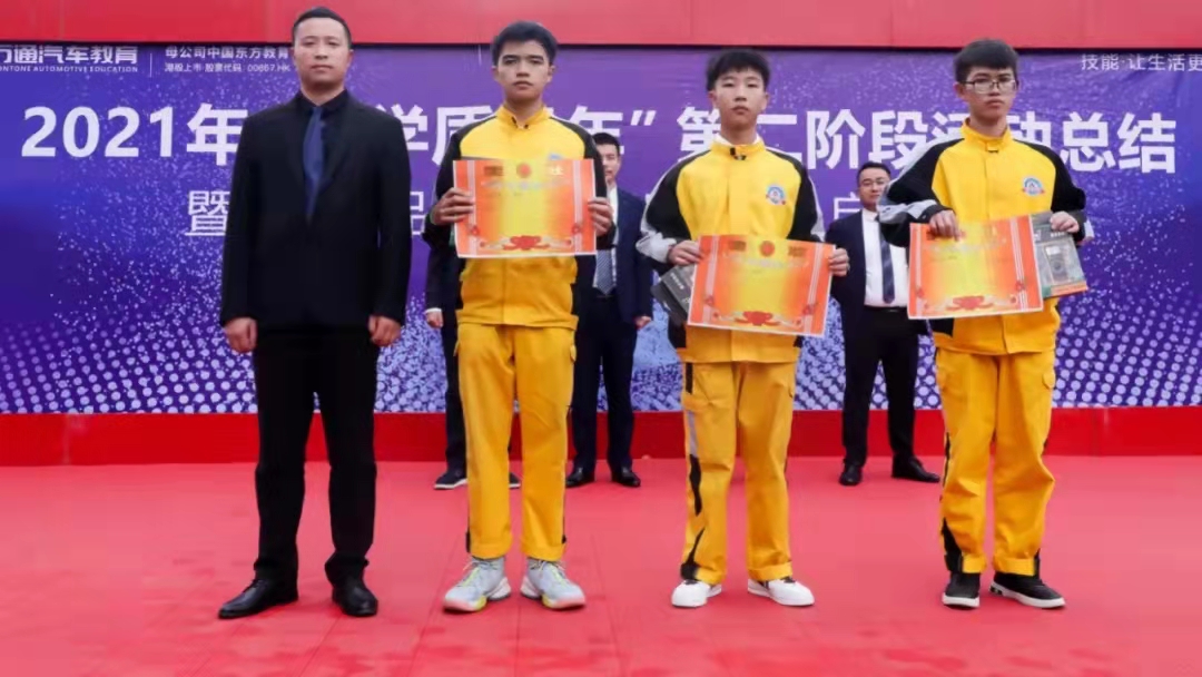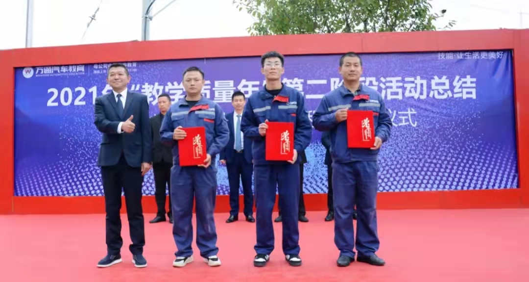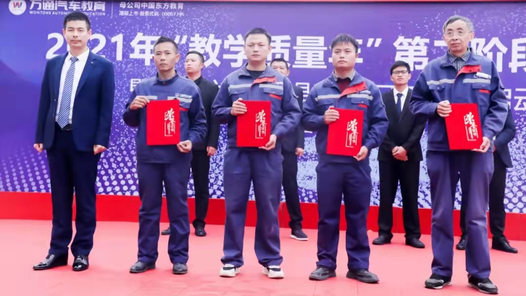 最后,由周四文助理颁发教研技术产品贡献奖,获得电控台架贡献奖的李林老师,获得美容车头台架贡献奖的姚江琴、何东旭、周仁汝老师。