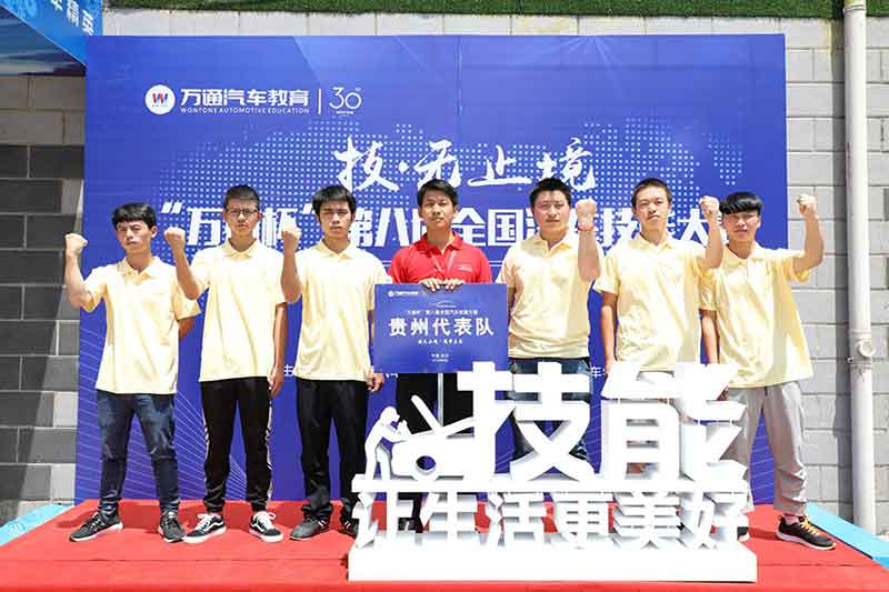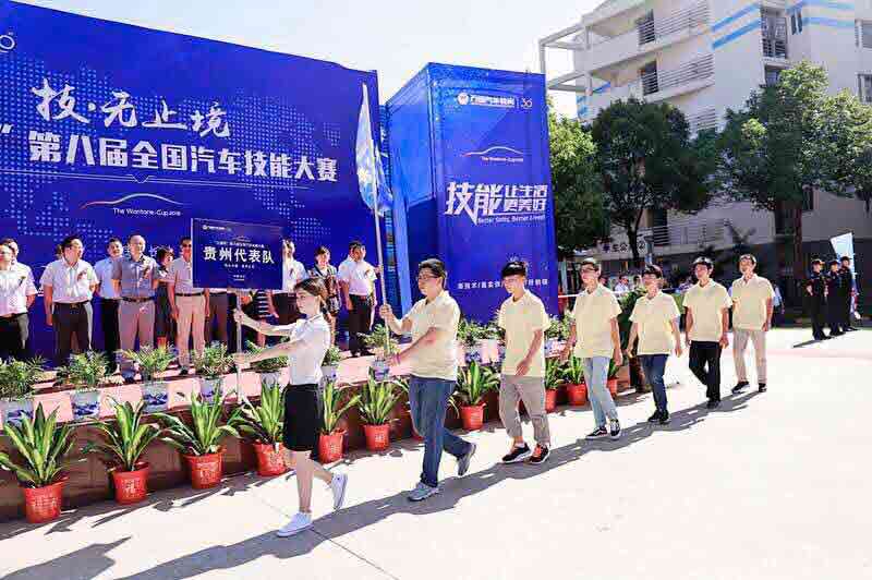 6月28号上午9点,各个学校的代表队伍纷纷入场,19支决赛队伍有条不紊的走到各自的参赛席,我们贵州万通汽车学校派出6名学子组成闪电队参加决赛,学子们喊着“身手矫健,一马当先”的口号步入决赛现场,