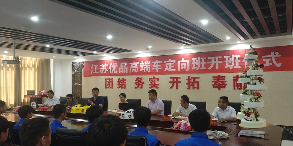 贵州万通汽车学校校长助理与江苏优品汽车服务有限公司负责人为切开了代表希望与成长的大蛋糕,标志着江苏优品高端车定向班正式开班!