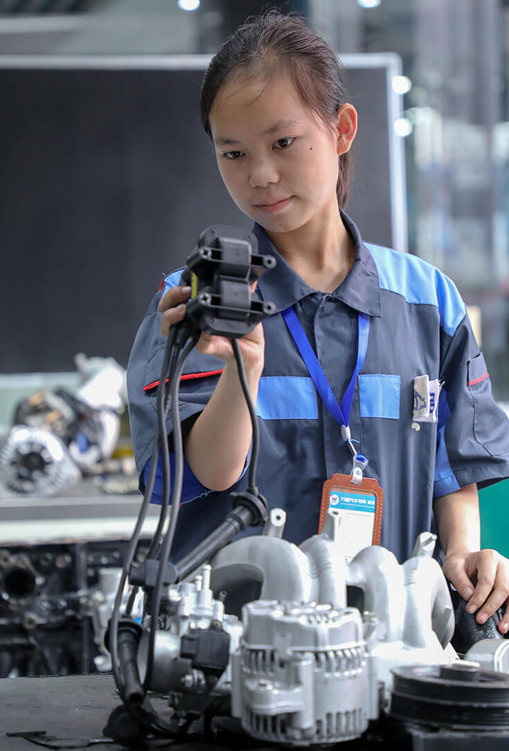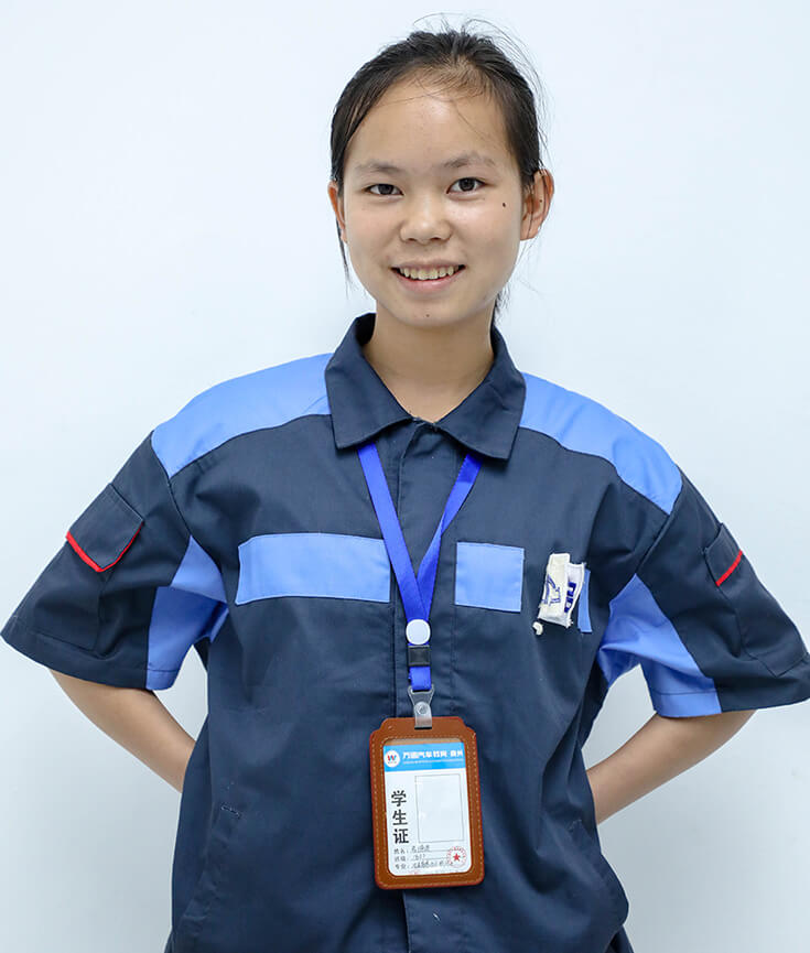 初中毕业之后,成绩处于班级中游的小蒙越发感受到自己成绩想上好高中,考大学有点困难,即使最后考上了大学,将来毕业也不一定能够找到一个好工作,于是小曾渐渐产生了一个大胆的想法,上职校,专门学技术,在跟父母商量后,她毅然与父亲商量放弃就读高中,选择来贵州万通汽车教育学习汽修。当时身边很多人表示不理解,觉得女孩子怎么能去学汽修呢,小曾说:因为我喜欢,而且相信我可以做到!