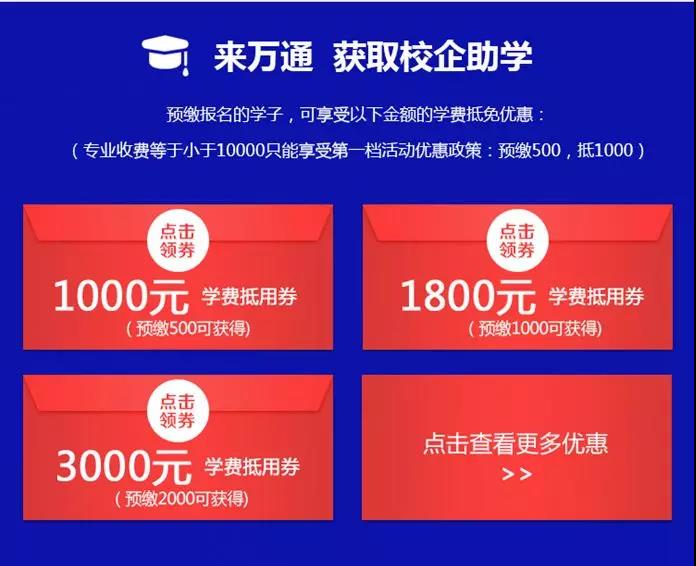 一、 活动期间,预缴报名的学子,可享受以下金额的学费抵免优惠: