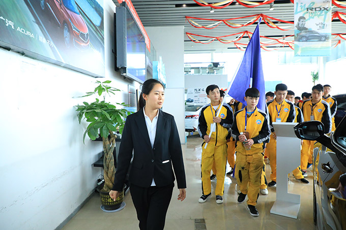 在企业相关工作人员的热情接待下,同学们依次先后参观了讴歌4S店的系列车间、汽车美容区及售后处理部等相关部门,通过体验游学的方式同学们对讴歌有了更深的了解和接触。整个体验过程中,遇到不清楚的地方同学们会随时向随行的企业领导或工作人员提出问题。