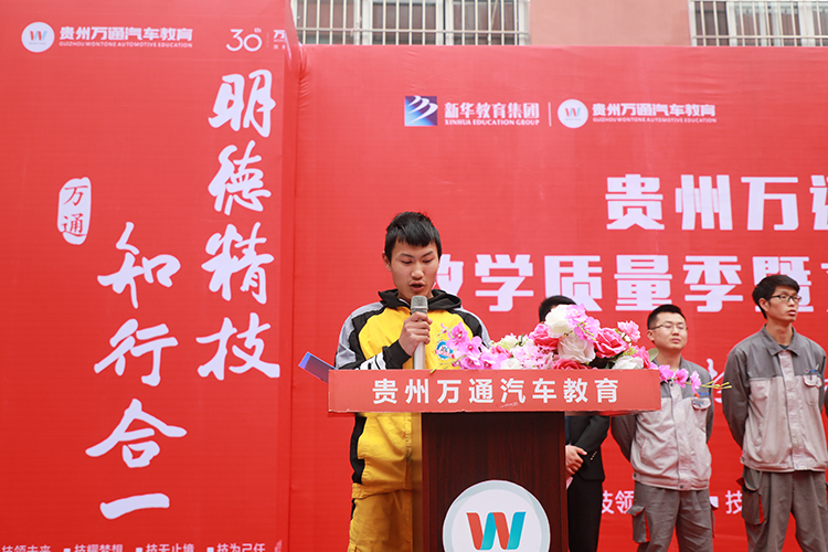 活动最后,贵州万通校长助理李新对本次贵州万通2019教学质量季暨文明月启动仪式做重要讲话,李助说到:“文明月的开展是摒弃生活陋习,崇尚文明礼仪,增强自身素质,创建文明校园,构建和谐社会,打造文明新风尚,争做文明万通人。教学质量季仅是一种督促手段,贵州万通汽车教育的老师们始终贯彻学校活动宗旨,做到每一天、每一季、每一年都是“教学质量季”,也相信在全体师生的共同努力下,本次教学质量季文明月活动取得圆满成功。”