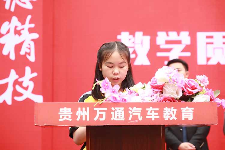 随着活动推进,学生代表杨高做本次教学质量学员代表发言,杨高同学精彩激昂的发言,引起了台下同学们的热烈掌声,他坦诚质朴的演讲希望各位同学遵守纪律,将文明礼貌习惯贯穿至学习生活细节,并希望同学们刻苦学习,勤于钻研,在汽车专业领域取得更加优异的成绩和努力成为德才兼备的职业人才。