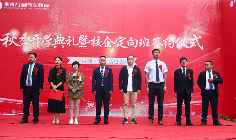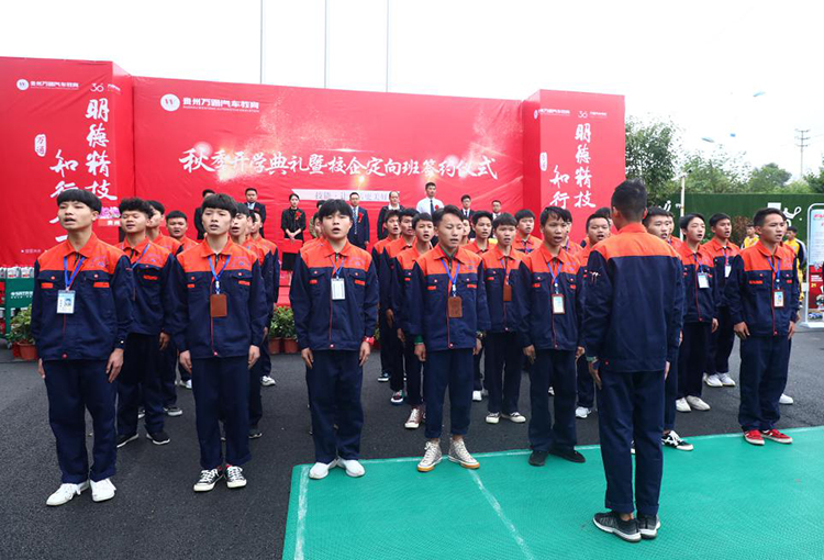 9月20日,贵州万通汽车教育2019年秋季开学典礼暨定向班签约仪式在校园操场隆重举行,来自贵州捷润通贸易有限公司、上海车享家汽车科技服务有限公司的企业代表及贵州万通汽车教育校长李登宝、校助潘沫沄、校助李新等相关领导出席了本次开学典礼,共同迎接新学期的到来。