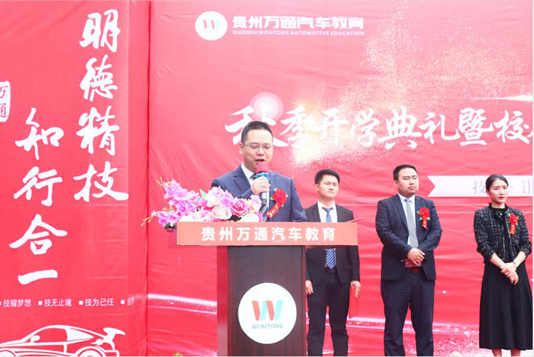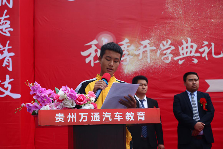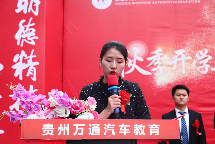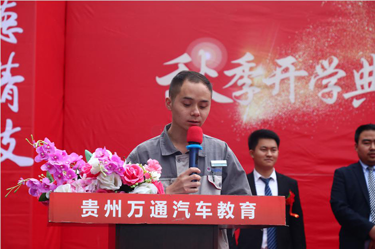 首先,贵州万通汽车教育校长助理潘助致开幕辞。致辞中,潘助代表贵州万通全体职教工对新同学们的表示热烈的欢迎,并嘱咐同学们一定要严格要求自己、要专注技能、专心学习。
