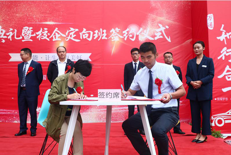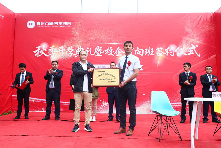 接下来,贵州万通校长助力李新代表贵州万通与企业达成人才培养战略协议,搭建校企合作平台,现场与贵州捷润通贸易有限公司、上海车享家汽车科技服务有限公司进行了校企定向班签约,建立长久的合作联盟关系。