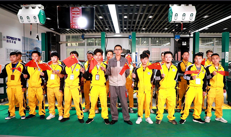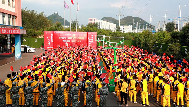 实训车间、校园、操场、教室,每一个地方,都有贵州万通的师生们挥舞着手中的国旗,齐声高唱着象征对祖国母亲热爱的歌曲,他们身着统一服装,融入红旗元素,在学习生活的每一个角落演绎着赞歌,展现着贵州万通师生们积极向上、朝气蓬勃、昂扬奋进的精神风貌。