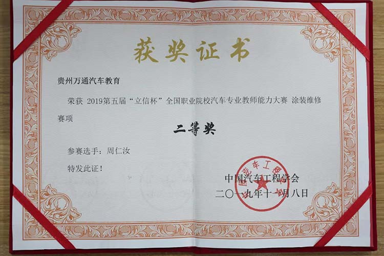 经过激烈角逐,参赛教师分别从微课、信息化教学和技术技能等方面进行比拼,历经选拔赛、预赛、决赛三个阶段。我校教师代表周仁汝老师经过重重考核,荣获本届“立信杯”涂装维修赛项二等奖。