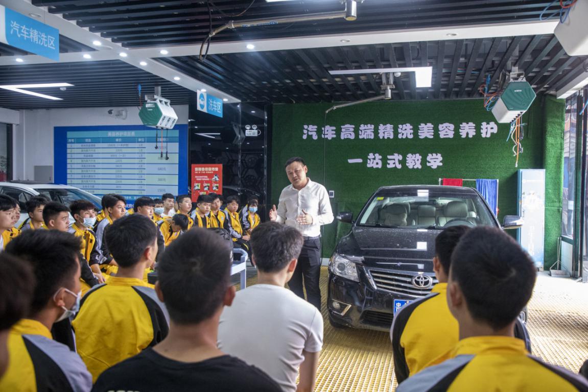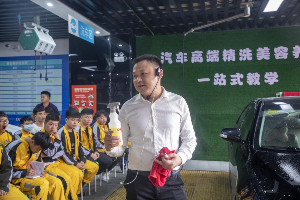 “同学你来答,汽车的漆面有几层?”“恩……不知道”,6月16日,一场师生互动在贵州万通的汽车高端清洗美容养护实训室上演,原来是贵州大河山商贸有限公司总经理曾祥鹏,走进贵州万通,现场分享汽车漆面抛光的流程,漆面抛光工具使用,漆面抛光需要注意的细节等。