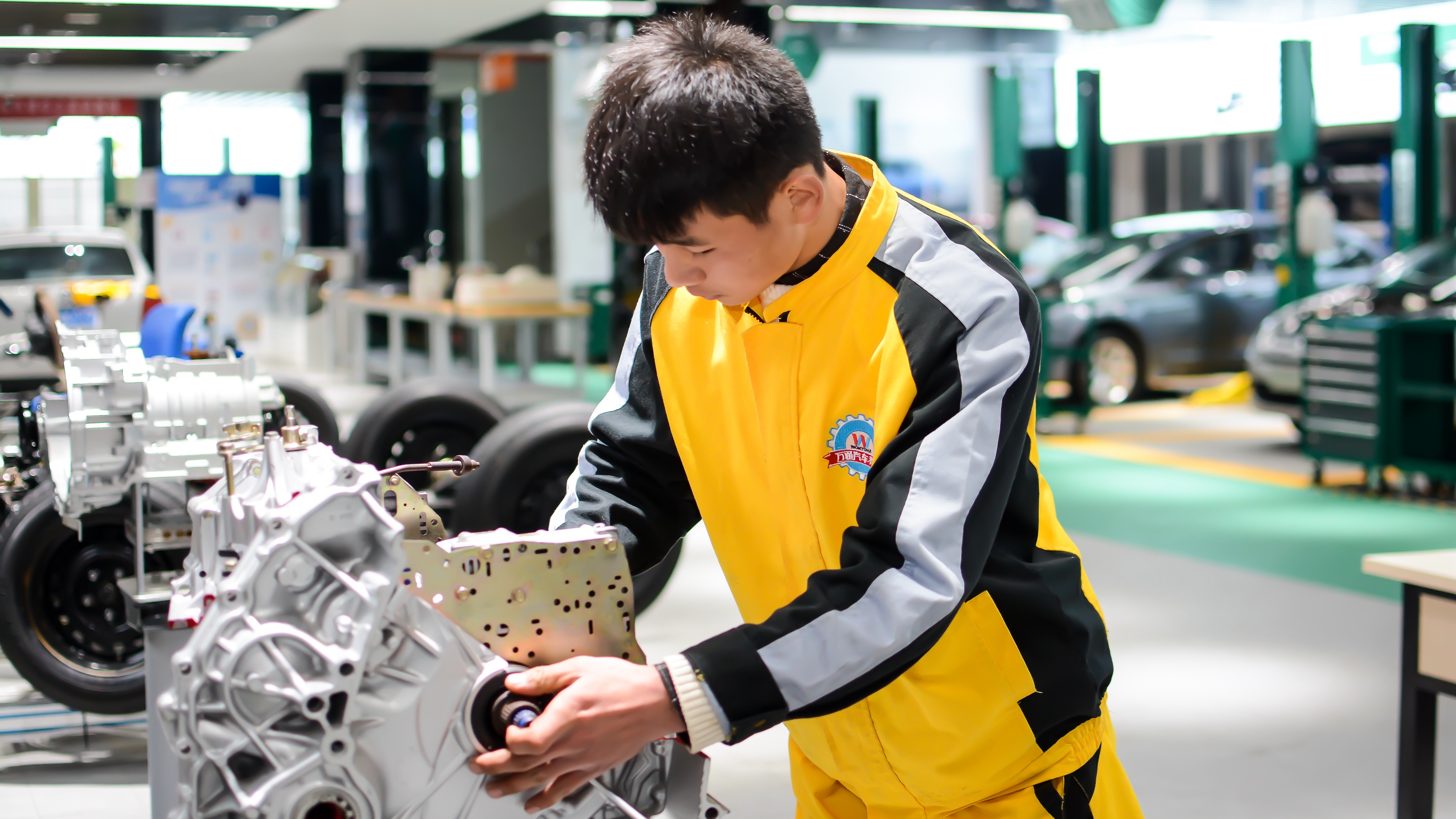 罗远是今年来到的贵州万通学习汽修专业。在此之前,但是从小他心里就有着一个赛车梦,上了高中以后愈发的强烈,于是和家人商量以后,他选择来到了贵州万通进修汽修专业,目的是在接触赛车以前,先对汽车知识有一个深入的了解。