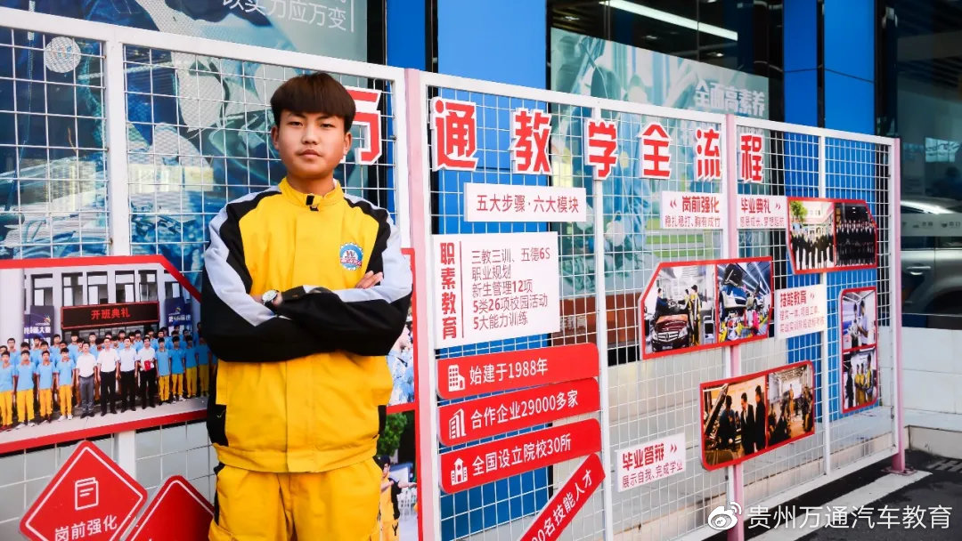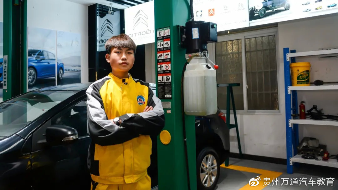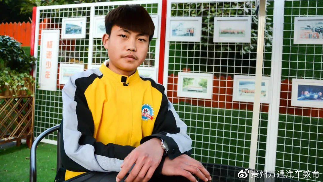 付显通是今年来到的贵州万通学习汽车修理。由于成绩并不是很理想,加上家里的经济状况并不是很好,所以便想早点学习一门技术,步入社会,为家里减轻一点压力。他选择来到贵州万通学习汽修,深耕汽修行业,比起其他人,他的学习更加努力。